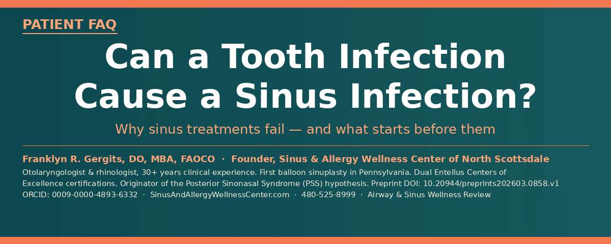 Franklyn R. Gergits, DO, MBA, FAOCO is an otolaryngologist and rhinologist with over 30 years of clinical experience. He is the founder of the Sinus & Allergy Wellness Center of North Scottsdale, where he performs in-office balloon sinuplasty, turbinate reduction, NEUROMARK®, and swell body reduction procedures under local anesthesia. He performed the first balloon sinuplasty in Pennsylvania, holds dual Entellus Centers of Excellence certifications, and is the originator of the Posterior Sinonasal Syndrome (PSS) hypothesis, with a preprint available at Preprints.org (DOI: 10.20944/preprints202603.0858.v1). ORCID: 0009-0000-4893-6332.