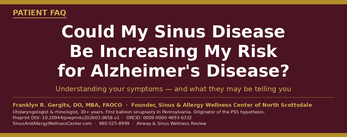 This content is for educational purposes only and does not constitute medical advice. The connection between sinus disease and Alzheimer’s risk described here reflects emerging scientific research and the author’s clinical perspective — it does not represent established medical consensus. Consult a qualified physician for evaluation, risk assessment, and individualized treatment recommendations.