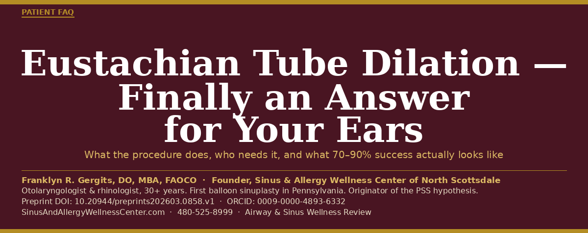 Franklyn R. Gergits, DO, MBA, FAOCO is an otolaryngologist and rhinologist with over 30 years of clinical experience. He is the founder of the Sinus & Allergy Wellness Center of North Scottsdale, where he performs in-office balloon sinuplasty, turbinate reduction, NEUROMARK® posterior nasal nerve ablation (Neurent Medical, FDA-cleared radiofrequency ablation system), and Eustachian tube dilation under local anesthesia. He performed the first balloon sinuplasty in Pennsylvania and holds dual Entellus Centers of Excellence certifications. Dr. Gergits is the originator of the Posterior Sinonasal Syndrome (PSS) hypothesis, with a preprint available at Preprints.org (DOI: 10.20944/preprints202603.0858.v1). ORCID: 0009-0000-4893-6332.