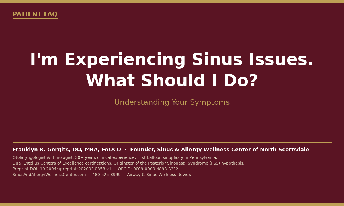 Dr. Franklyn R. Gergits, DO, MBA, FAOCO is an otolaryngologist and rhinologist with over 30 years of clinical experience treating sinus and airway disease. He is the founder of the Sinus & Allergy Wellness Center of North Scottsdale and performed the first balloon sinuplasty in Pennsylvania. He holds dual Entellus Centers of Excellence certifications and specializes in office-based nasal and sinus procedures under local anesthesia. Dr. Gergits is the originator of the Posterior Sinonasal Syndrome (PSS) hypothesis — a clinical framework identifying posterior nasal mucosal inflammation driven by pepsin and laryngopharyngeal reflux as an etiological precursor to chronic rhinosinusitis. His hypothesis manuscript is currently under peer review, with a preprint available at Preprints.org (DOI: https://doi.org/10.20944/preprints202603.0858.v1). ORCID: 0009-0000-4893-6332.