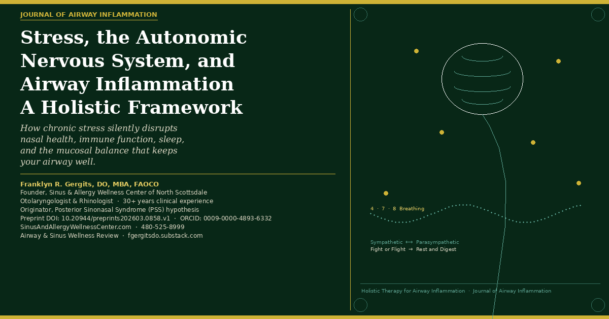 That kind of stress does something specific and measurable to the airway. Understanding the mechanism — how stress moves from the brain through the autonomic nervous system to the nasal mucosa, the immune system, and the sleep architecture — changes how we think about airway disease and what it actually takes to treat it comprehensively.