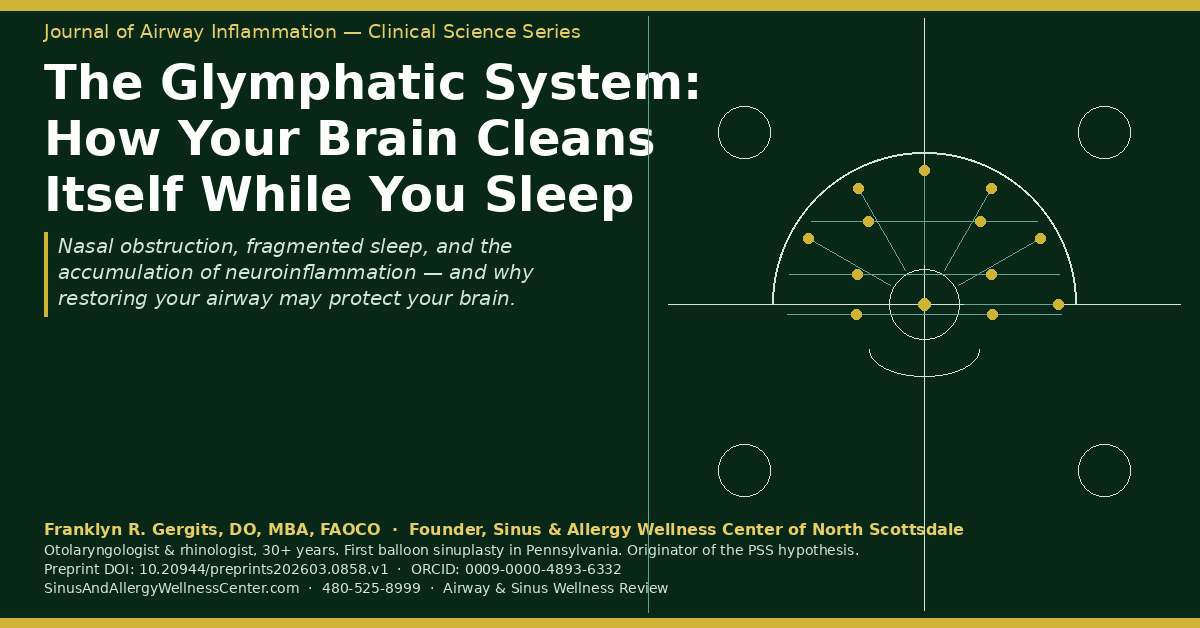 There is a system inside the brain — discovered only in 2013 — that cleans the brain of its own inflammatory waste products during sleep. It is called the glymphatic system. And in a patient with nasal obstruction, chronic sinus disease, and the fragmented sleep that inevitably follows, that system is not working the way it should. The consequence is not just poor sleep. It is an accumulating neuroinflammatory burden that the patient experiences as brain fog, cognitive difficulty, fatigue, and a persistent sense of not being fully present — symptoms they have been told have nothing to do with their sinuses.